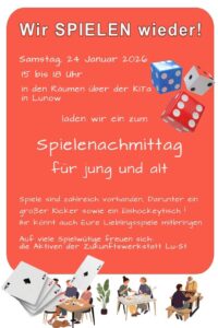 Spielenachmittag für Alle! Klein, Groß, Jüngere, Ältere – Spiele und Spieltische sind vor Ort (u.a. Kicker und Eishockey), Ihr könnt aber wie immer auch eigene Spiele mitbringen.